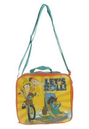 amarillo, elaborada en textil/poliéster. Diseño multicolor con estampado de Phinea y Ferb y corte cuadrado. Posee un