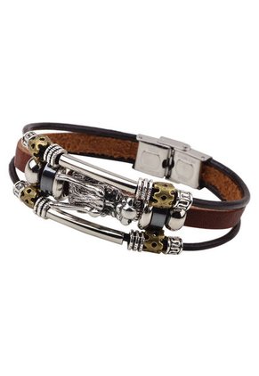 Manilla Cuero Hombre Acero Cabeza De Dragón Color Marrón