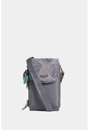 Bolso tipo manos libres en textil estampado tipo cellbag con tres compartimentos internos, uno con cierre para mayor seguridad y otr