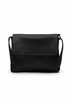 Bolso Manos Libres negro Macoly, elaborado en sintético (poliuretano), diseño casual. Detalles alusivos a la marca y finas costuras visibles. Tiene un compartimiento con bolsillo interno, bolsillo sorpresa interno, tapa con broche y correa manos libres.