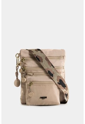 Diseño de bandolera mediano en textil para mujer con cargaderas estampadas en animal.Diseño de tres bolsillos principales con uno de