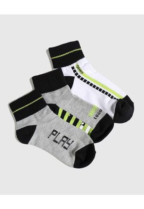 Pack x 3 medias tobilleras para niño, elástico en la entrada, refuerzo en talón y punta, estampado gamer. Son suaves y cómodas al tacto, ideal para que tus hijos las usen en el día a día. Hechas en algodón, poliéster y elastano.Especificaciones:Modelo: TobilleraColor MulticolorComposición: Algodón 70% Poliéster 25% Elastano 5%Instrucciones de Lavado:No dejar en remojoLavar en agua fría separadamenteNo usar blanqueadorNo retorcerSecar a la SombraPlancha tibiaHecho en ColombiaFabricado por: Manufacturas Eliot SAS