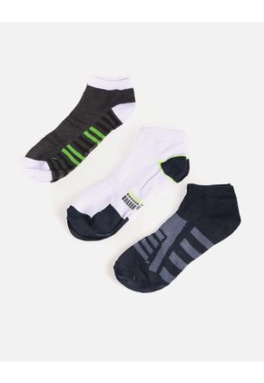 Pack de 3 medias tobilleras para hombre, diseñadas para brindar mayor comodidad y resistencia. Perfectas para el uso diario, deportes o largas jornadas gracias a su tejido firme y transpirable. Imágenes de referencia: estampado y color pueden variar según disponibilidad.