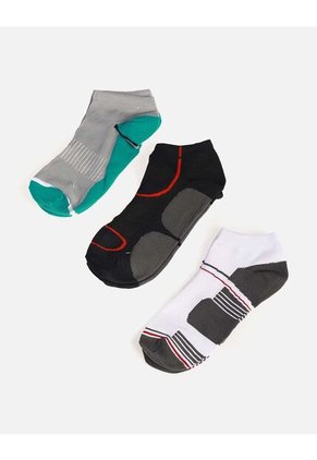 Pack de 3 medias tobilleras para hombre, diseñadas para brindar mayor comodidad y resistencia. Perfectas para el uso diario, deportes o largas jornadas gracias a su tejido firme y transpirable. Imágenes de referencia: estampado y color pueden variar según disponibilidad.