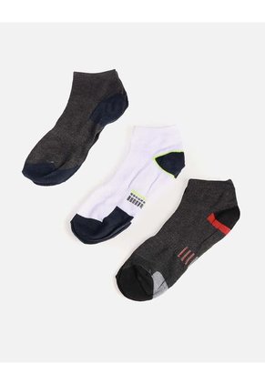 Pack de 3 medias tobilleras para hombre, diseñadas para brindar mayor comodidad y resistencia. Perfectas para el uso diario, deportes o largas jornadas gracias a su tejido firme y transpirable. Imágenes de referencia: estampado y color pueden variar según disponibilidad.