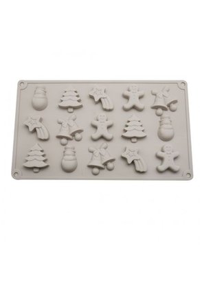 Molde en silicona figuras navideñas surtidas por 15 cavidades surtidas (muñeco nieve, estrella fugaz, arbol, campana, jengibre), fabricado en silicona de alta calidad de grado alimenticio, resistentes al calor y tienen una amplia tolerancia a la temperatura de -60° hasta 230°, seguros para uso en lavavajillas, horno, congelador, nevera y microondas por su resistencia, estabilidad y flexibilidad térmica. Su material de fabricación te permite desmoldar de una manera rápida y fácil, al igual que al momento de la limpieza. Aptos para uso en alimentos y para ser utilizados en procesos de horneado, congelación en pastelería ,restaurantes de industria de alimentación. Puede usarlo en chocolates, pata de goma, fondant, hielos. Medida molde 30 cm ancho x 17 cm largo- 1 cm profundidad. /Medida por cavidad 4 a 5 cm diámetro x 1 cm profundidad.