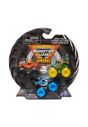 ¡Corre en una escala completamente nueva con el Monster Jam Mini 3-Pack oficial! ¡Rompe el empaque para descubrir El Toro Loco, Megalodon y Dragon! ¡Los minicamiones Monster Jam ponen la acción Monster Jam en la palma de tu mano! ¡Cada camión Monster Jam Mini está repleto de increíbles detalles y gráficos, al igual que su versión a gran escala!
