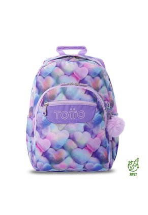 Morral Juvenil Porta PC 14" Acuarela Morado Con Corazones