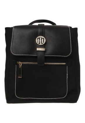 Morral negro Tommy Hilfiger, elaborado en nylon y cuero sintético ,diseño casual de textura semi
