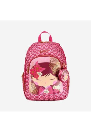 La princesa Kokeshi llega para alegrar la vida de las niñas que se expresan a través del diseño y el arte. Este morral escolar tiene un compartimento principal con cierre en cremallera y uno frontal con múltiples organizadores. Multiuso en el interior, espaldar acolchado, correas ajustables, bolsillos laterales, llavero estilo monedero y estampado con detalles de flores en un material suave. ¡Te encantará!