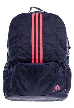 Morral adidas 3S PER BP color azul marino/rosado fluorescente, elaborado en