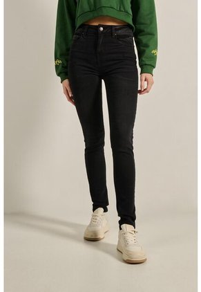 Jean jegging para mujer en tono gris oscuro cuenta con 5 bolsillos, botón metálico en la cintura, tiro alto, cierre con cremallera en frente y un ajuste ceñido a la silueta del cuerpo. Dale una vibra moderna a tu total look combinando esta prenda con tus buzos o camisetas favoritas. ¡Serás la sensación en todo momento!