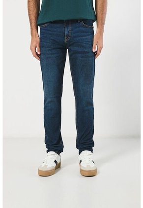 Jean para hombre slim azul oscuro cuenta con tiro bajo, costuras en contraste visibles, 5 bolsillos funcionales, cierre delantero con cremallera y un ajuste ceñido a la silueta del cuerpo. Luce juvenil en todo momento combinándolo con tus camisetas KOAJ favoritas, así le darás una nueva identidad a tu propio estilo.