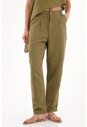 Pantalón Clásico Verde En 100% Lino Para Mujer