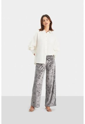 Pantalón Marte En Velvet Para Mujer Silueta Wide Leg Pantalón Marte En Velvet Para Mujer Silueta Wide Leg Gris 06 Vélez