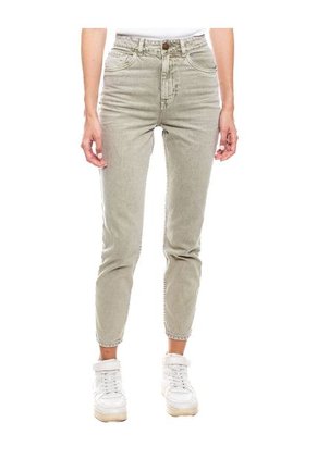 Pantalón high waist mom fit teñido verde con stone. Esta prenda está hecha con el corazón por manos Colombianas.