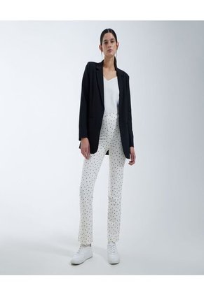 Pantalón tipo boot cut para mujer con estampado de puntos, tiro alto, cintura ajustada, silueta semi-ajustada desde la cadera a la bota, altura hasta el tobillo, textura lisa, una prenda versátil que puedes usar con blusas de diferentes estilos. ¡completa ahora tu pedido!Especificaciones:Color CremaComposición: Poliéster 89% Elastano 11%Instrucciones de Lavado:No dejar en remojoLavar en agua fría separadamenteNo usar blanqueadorNo retorcerSecar a la SombraPlancha tibiaHecho en ColombiaFabricado por: Manufacturas Eliot SAS