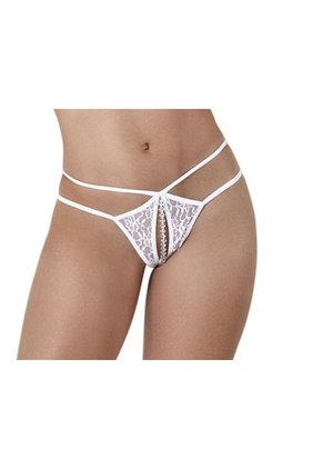Pantie Tanga Brasilera Ajustable Con Abertura - Bésame-Blanco