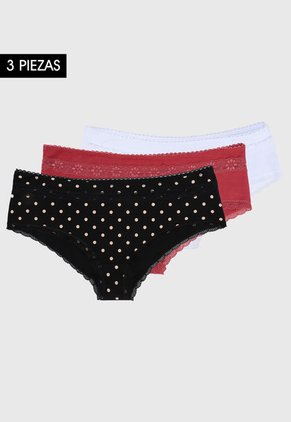 Pantie X3 Blanco-Vinotinto Lili Pink Panty tipo hipster en algodón con encaje en las piernas y en el frente. Suave elástico en la cintura que no marca. Talle bajo y cubrimiento medio atrás. Refuerzo en algodón. • Fit: Slim fit • Origen: Producto Nacional • Talla: S ESTE PRODUCTO NO TIENE CAMBIO NI DEVOLUCIÓN.