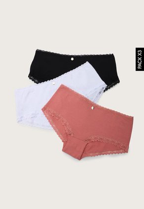 Pantie x3 Negro-Blanco-Salmón Lili Pink