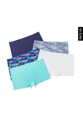 ¡Disfruta de la nueva presentación de este modelo ahora en paquete x5! Este pantie tipo bóxer en microfibra presenta refuerzo en algodón, elaborado con tecnología Corte Láser y termofusionado en cintura, costados y refuerzo. Es de talle bajo y proporciona buen cubrimiento atrás y hacia las piernas. Luce esbelta y hermosa con las prendas interiores de Lili Pink.