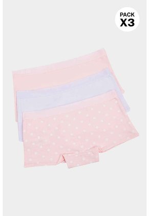 Panty Tipo Boxer En Algodón Suave Para Niñas Paquete X3 IN100-002 PANTY X3, T04, BLCO_RSCL_FLRS Lili Pink