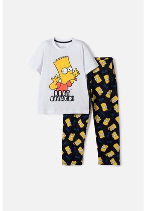 Pijama De Los Simpson Con Pantalón Largo Blanco, Azul Y Amarillo Para Niño 12