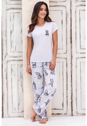 CONJUNTO de pijama suave y cómoda.Camiseta estampada manga corta,diseñada junto a un pantalón estampadocon cintura elásticaTallas: S · M · L · XLComposición Superior: Poliéster algodónColor: Lila