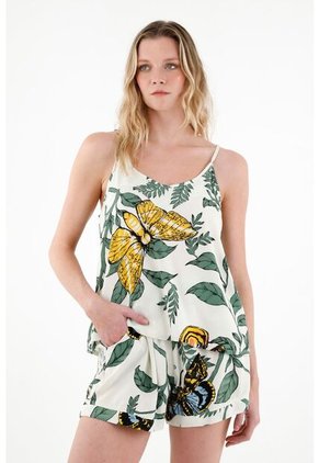 ¡Necesitabas esta pijama y no lo sabías! Un diseño exclusivo que llegará a tu clóset para acompañar tus noches más frescas y darte un estilo único. Características• Color: multicolor • De tiras graduables • Escote curvo • Tela fluida • Short con elástico en pretina • Bolsillos en costados • Estampado de mariposas • Material: Viscosa 100% Sobre el fit Perfecta para que te sientas cómoda, ligera y disfrutes al máximo tus descansos.