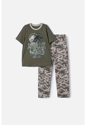 ¡Para noches de acción jurásica! Esta pijama de camiseta de manga corta y pantalón largo, ¡lo tiene todo!: estampados prehistóricos, confección en algodón para mayor suavidad y comodidad todas las noches y un diseño pensado para moverse con libertad incluso mientras duerme. Porque hasta los sueños merecen buen estilo y buenas historias.
