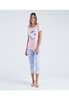 Conjunto de pijama para mujer, camiseta manga corta con estampado al frente y cuello redondo, pantalón tipo capri con estampado de hojas, silueta amplia, textura lisa, úsala para un descanso cómodo y fresco. ¡llévala agregándola al carrito de compras!Especificaciones:Color RosaComposición: Poliéster 65% Algodón 35%Instrucciones de Lavado:No dejar en remojoLavar en agua fría separadamenteNo usar blanqueadorNo retorcerSecar a la SombraPlancha tibiaHecho en ColombiaFabricado por: Manufacturas Eliot SASGarantía: 30 Días.