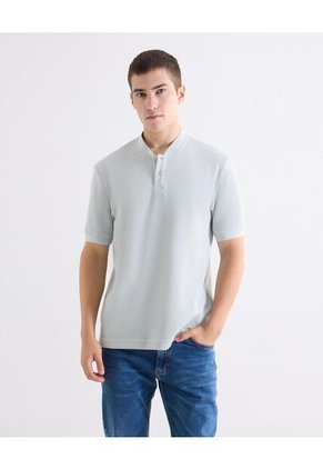 Polo Para Hombre Cuello Mao Sin Bolsillo Color Azul Marca Ostu #60110648