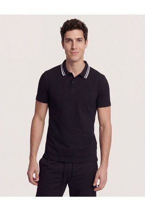 Polo Para Hombre Cuello Tejido Sin Bolsillo Color Negro Marca Ostu #60110901