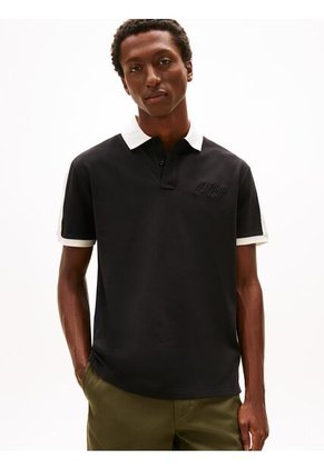 Polo Negro Mesh De Corte Regular Tommy Hilfiger