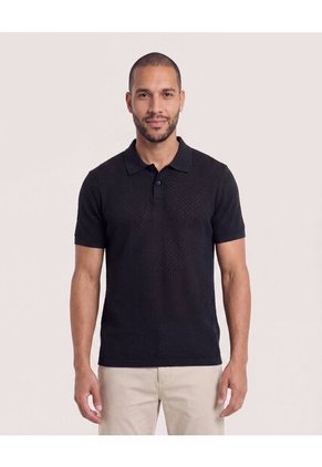 Polo Texturizada Manga Corta Para Hombre Negro Ostu