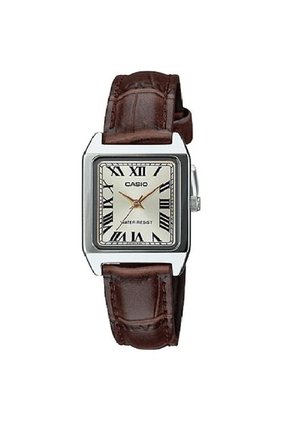 Reloj casio Analogo para dama, cuenta con cristal elaborado en Mineral de color champana, su caja tiene un tamaño de 31×22×7.5mm elaborada en Acero inoxidable de color Plateado, pulso café en Cuero, cierre de Hebilla, el tipo de movimiento es quartz, tiene resistencia al agua de 30 mts y tiene garantia de 1 ano sobre maquinaria unicamente.