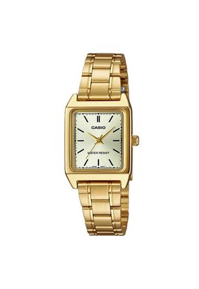 - • Marca: Casio• Modelo: LTP-V007G-9EUDF• Colección: Core Ladies• Genero: Mujer• Color de la caja: Dorado• Color del pulso: Dorado• Material del Pulso: Acero Inoxidable• Cristal: Mineral• Diametro de Caja: 31mm• Material de Caja: Acero Inoxidable• Espesor de Caja: 7.5mm• Movimiento: Cuarzo• Resistencia al agua: 5 bares (50 metros)• Tipo de Cierre: Desplegable• Garantía: 12 MESES SOBRE MAQUINARIA UNICAMENTE.NO CUBRE:*Uso inadecuado por parte del comprador, Golpes y/o mala manipulación del producto.*No aplica para daños, deterioro o cambio de pulso.*No aplica para coronas y/o cristales.