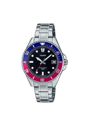 - • Marca: Casio• Modelo: MDV-10D-1A3VDF• Colección: Core Mens• Genero: Hombre• Color de la caja: Bicolor• Color del pulso: Plateado• Material del Pulso: Acero Inoxidable• Cristal: Mineral• Diametro de Caja: 38.5mm• Material de Caja: Acero Inoxidable / Aluminio• Espesor de Caja: 10.4mm• Movimiento: Cuarzo• Resistencia al agua: 5 bar - 50mts• Tipo de Cierre: Desplegable• Garantía: 12 MESES SOBRE MAQUINARIA UNICAMENTE.NO CUBRE: *Uso inadecuado por parte del comprador, Golpes y/o mala manipulación del producto. *No aplica para daños, deterioro o cambio de pulso.*No aplica para coronas y/o cristales.
