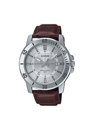 - • Marca: Casio• Modelo: MTP-VD01L-7CVUDF• Colección: Core Mens• Genero: Hombre• Color de la caja: Plateado• Color del pulso: café• Material del Pulso: cuero• Cristal: Mineral• Diametro de Caja: 45mm• Material de Caja: Acero Inoxidable• Espesor de Caja: 10.3mm• Movimiento: Cuarzo• Resistencia al agua: 5 bar - 50mts• Tipo de Cierre: Hebilla• Garantía: 12 MESES SOBRE MAQUINARIA UNICAMENTE.NO CUBRE: *Uso inadecuado por parte del comprador, Golpes y/o mala manipulación del producto. *No aplica para daños, deterioro o cambio de pulso.*No aplica para coronas y/o cristales.
