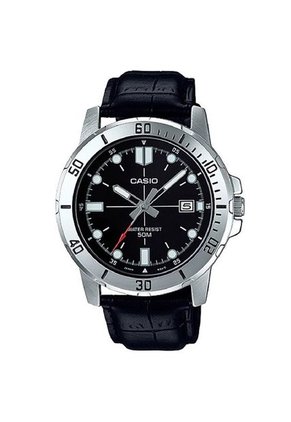 Reloj casio MTP-VD01L-1E analogo para hombre su caja de color plateado elaborado en acero inoxidable, la caja tiene un tamaño de 49x45x10.3mm, su tablero de color negro, cristal en mineral, su hermoso pulso en cuero de color negro, tipo de cierre es de hebilla, su movimiento es quartz, tiene resistencia al agua de 50 mts y cuenta con un año de garantia sobre maquinaria unicamente.