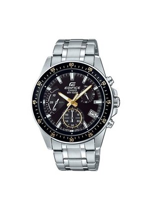 Un Cronógrafo Edifice Estándar De Tamaño Mediano. Las Piezas Del Marco Y El Dial De Inserción Tienen Color Dorado Para Crear Un Diseño Deportivo Pero Sofisticado.