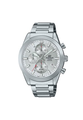 - • Marca: Casio• Modelo: EFB-710D-7AVUDF• Colección: Edifice• Genero: Hombre• Color de la caja: Plateado• Color del pulso: Plateado• Material del Pulso: Acero Inoxidable• Cristal: Mineral• Diametro de Caja: 48mm• Material de Caja: Acero Inoxidable• Espesor de Caja: 10.5mm• Movimiento: Cuarzo• Resistencia al agua: 10 bar - 100mts• Tipo de Cierre: Desplegable• Garantía: 12 MESES SOBRE MAQUINARIA UNICAMENTE.NO CUBRE: *Uso inadecuado por parte del comprador, Golpes y/o mala manipulación del producto. *No aplica para daños, deterioro o cambio de pulso.*No aplica para coronas y/o cristales.