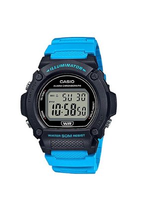 FICHA TECNICAMarca: Casio Modelo: W-219H-2A2 Genero: Hombre Color de esfera: Gris Color del pulso: Azul Material del pulso: Resina Cristal: Resina Diametro de la caja: 48.1×47×13.9mm Material de caja: Resina Movimiento: Quartz Tipo de cierre: Hebilla Resistencia al agua: 50 mts Garantia: 12 MESES SOLAMENTE SOBRE MAQUINARIA.NO CUBRE:*Uso inadecuado por parte del comprador, Golpes y/o mala manipulación del producto.*No aplica para daños, desgastes, o deterioro de los pulsos, correas, hebillas ni broches.*No aplica para cambio de pilas, ruptura o rayones en el cristal, rasguños, averias por uso indebido, daños por agua ni humedad, ni cualquier otro daño que resulte del desgaste normal.