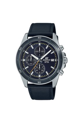 Toque La Fibra Sensible Con Un Cronógrafo Edifice Clásico De Tamaño Medio Que Presenta Una Atrevida Combinación De Finos Detalles Y Diseño. La Correa De Cuero Genuino Se Combina Con Una Esfera En Gris Oscuro Inspirada En Estilos De Conducción Urbanos Frescos.