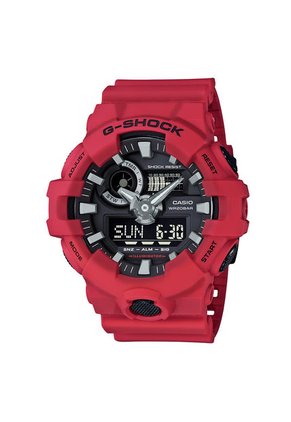 - • Marca: Casio• Modelo: GA-700-4ADR• Colección: G-Shock• Genero: Hombre• Color de la caja: Rojo• Color del pulso: Rojo• Material del Pulso: Resina• Cristal: Mineral• Diametro de Caja: 53.4mm• Material de Caja: Resina• Espesor de Caja: 18.4mm• Movimiento: Cuarzo• Resistencia al agua: 20 Bares (200 metros)• Tipo de Cierre: Hebilla• Garantía: 12 MESES SOBRE MAQUINARIA UNICAMENTE.NO CUBRE: *Uso inadecuado por parte del comprador, Golpes y/o mala manipulación del producto. *No aplica para daños, deterioro o cambio de pulso.*No aplica para coronas y/o cristales.
