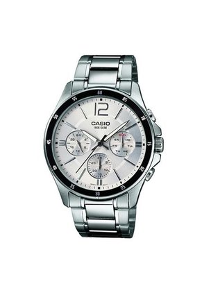 - • Marca: Casio• Modelo: MTP-1374D-7AVDF• Colección: Core Mens• Genero: Hombre• Color de la caja: Plateado• Color del pulso: Plateado• Material del Pulso: Acero• Cristal: Mineral• Diametro de Caja: 43.5mm• Material de Caja: Acero• Espesor de Caja: 10mm• Movimiento: Cuarzo• Resistencia al agua: 5 bares (50 metros)• Tipo de Cierre: Desplegable• Garantía: 12 MESES SOBRE MAQUINARIA UNICAMENTE.NO CUBRE: *Uso inadecuado por parte del comprador, Golpes y/o mala manipulación del producto. *No aplica para daños, deterioro o cambio de pulso.*No aplica para coronas y/o cristales.