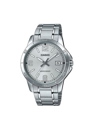 - • Marca: Casio• Modelo: MTP-V004D-7B2UDF• Colección: Core Mens• Genero: Hombre• Color de la caja: Plateado• Color del pulso: Plateado• Material del Pulso: Acero• Cristal: Mineral• Diametro de Caja: 41.5mm• Material de Caja: Acero• Espesor de Caja: 8.3mm• Movimiento: Cuarzo• Resistencia al agua: 5 bares (50 metros)• Tipo de Cierre: Desplegable• Garantía: 12 MESES SOBRE MAQUINARIA UNICAMENTE.NO CUBRE: *Uso inadecuado por parte del comprador, Golpes y/o mala manipulación del producto. *No aplica para daños, deterioro o cambio de pulso.*No aplica para coronas y/o cristales.