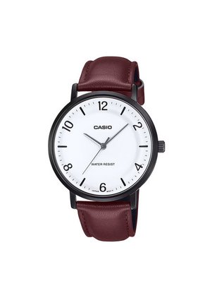 - • Marca: Casio• Modelo: MTP-VT03BL-7BDF• Colección: Vintage• Genero: Hombre• Color de la caja: Negro• Color del pulso: Vinotinto• Material del Pulso: Cuero• Cristal: Mineral• Diametro de Caja: 40mm• Material de Caja: Acero inoxidable• Espesor de Caja: 8.2mm• Movimiento: Cuarzo• Resistencia al agua: 5 bares (50 metros)• Tipo de Cierre: Hebilla• Garantía: 12 MESES SOBRE MAQUINARIA UNICAMENTE.NO CUBRE: *Uso inadecuado por parte del comprador, Golpes y/o mala manipulación del producto. *No aplica para daños, deterioro o cambio de pulso.*No aplica para coronas y/o cristales.