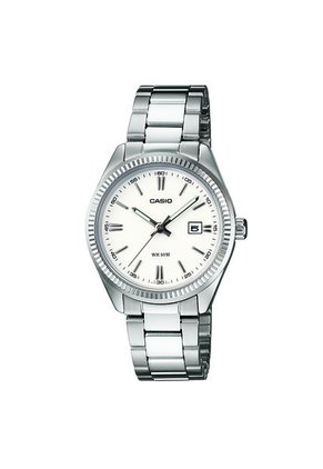 - • Marca: Casio• Modelo: LTP-1302D-7A1VDF• Colección: Core Ladies• Genero: Mujer• Color de la caja: Plata• Color del pulso: Plata• Material del Pulso: Metal• Cristal: Mineral• Diametro de Caja: 26mm• Material de Caja: Metal• Espesor de Caja: 8mm• Movimiento: Cuarzo• Resistencia al agua: solo salpicaduras• Tipo de Cierre: Desplegable• Garantía: 12 MESES SOBRE MAQUINARIA UNICAMENTE.NO CUBRE: *Uso inadecuado por parte del comprador, Golpes y/o mala manipulación del producto. *No aplica para daños, deterioro o cambio de pulso.*No aplica para coronas y/o cristales.