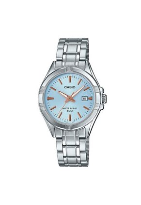 - • Marca: Casio• Modelo: LTP-1308D-2AVDF• Colección: Core Ladies• Genero: Mujer• Color de la caja: Plateado• Color del pulso: Plateado• Material del Pulso: Acero Inoxidable• Cristal: Mineral• Diametro de Caja: 31.2mm• Material de Caja: Acero Inoxidable• Espesor de Caja: 8.7mm• Movimiento: Cuarzo• Resistencia al agua: 5 bares (50 metros)• Tipo de Cierre: Desplegable• Garantía: 12 MESES SOBRE MAQUINARIA UNICAMENTE.NO CUBRE: *Uso inadecuado por parte del comprador, Golpes y/o mala manipulación del producto. *No aplica para daños, deterioro o cambio de pulso.*No aplica para coronas y/o cristales.